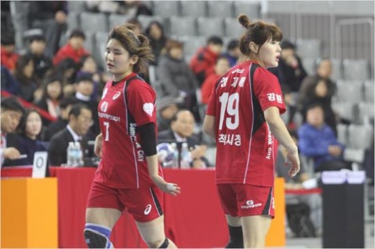 우승후보 삼척시청의 장은주(왼쪽)와 정지해. (사진=대한핸드볼협회 제공)
