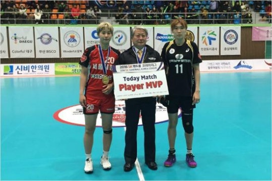 무승부와 함께 공동 MVP로 선정된 권한나(왼쪽)와 심해인. (사진=대한핸드볼협회 제공)