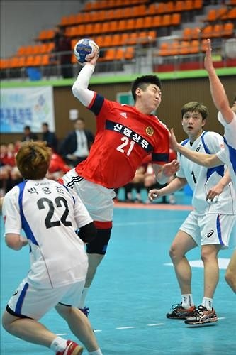 슛을 던지는 신협상무 정진호. [대한핸드볼협회 제공]