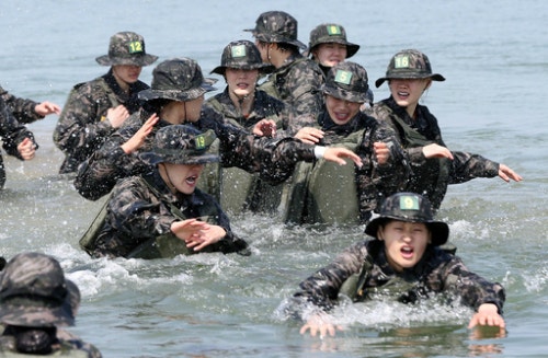 리우올림픽에 출전하는 여자핸드볼 국가대표팀이 30일 포항 해병대 교육단에서 극기훈련을 받고 있다. 대표팀은 해병대 정신으로 무장해 리우 하계올림픽에서 좋은 성적을 거두겠다는 각오로 훈련에 임했다. 포항=연합뉴스 |