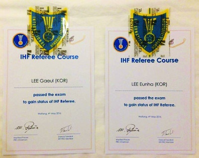 만족하지 않고 지난 4월엔 중국 웨이팡에서 열린 IHF 국제심판강습회에 참여해 당당히 시험에 통과했다. 국내에서 IHF 국제심판은 이 커플과