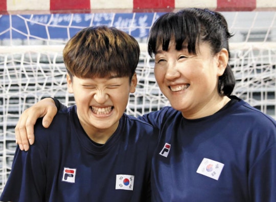 23일 여자 핸드볼 대표팀의 리우올림픽 미디어 데이 행사에선 두 선수가 유독 눈에 띄었다. 11살과 7살 난 딸 둘을 둔 대표팀 최고령 오영란(44)과 24살 어린 막내 유소정(20)이었다. "소정이" "영란 언니"로 서로를 호칭한 둘은 "목표는 메달"이라고 입을 모았다.