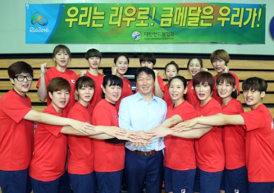 최태원 SK그룹 회장은 리우올림픽을 앞두고 있는 핸드볼 여자 국가대표 선수단을 직접 격려했다.