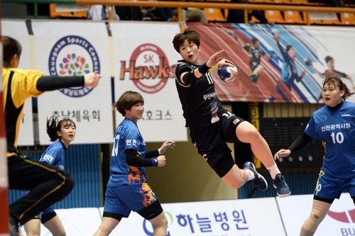 슛을 시도하는 부산시설공단 류은희. [대한핸드볼협회 제공=연합뉴스 자료사진]