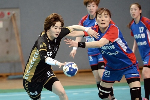 공격을 시도하는 SK 김온아(왼쪽). [대한핸드볼협회 제공=연합뉴스 자료 사진]