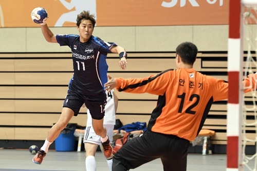 슛을 던지는 두산 임덕준. [대한핸드볼협회 제공=연합뉴스 자료사진]