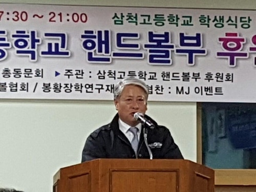 핸드볼 후원행사에 참석한 김양호 삼척시장. [삼척고 핸드볼 후원회 제공=연합뉴스]