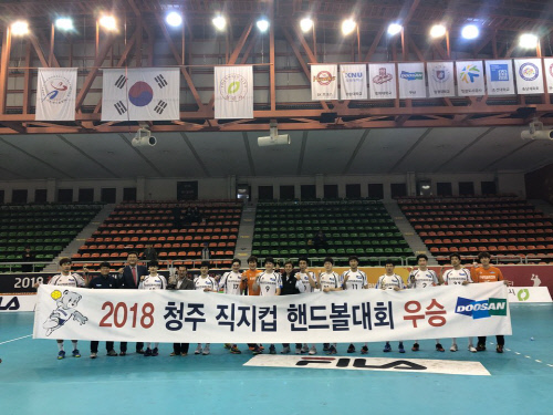 [스포츠서울 윤세호기자] 두산 핸드볼팀이 2018 청주 직지컵 핸드볼대회(핸드볼코리아컵대회) 남자부 4연패에 성공했다.