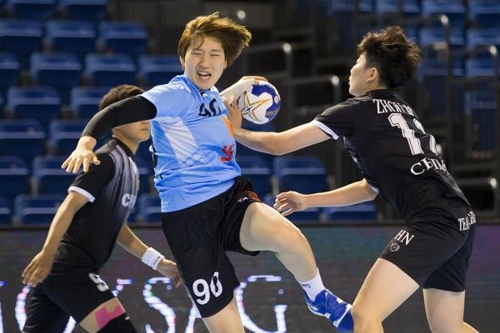 중국을 상대로 슛을 던지는 한국 문수현. [국제핸드볼연맹 홈페이지 사진]