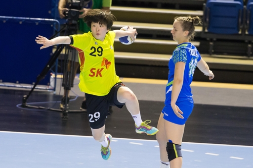 슬로베니아 전에서 슛을 던지는 신다래. [국제핸드볼연맹 인터넷 홈페이지 사진]