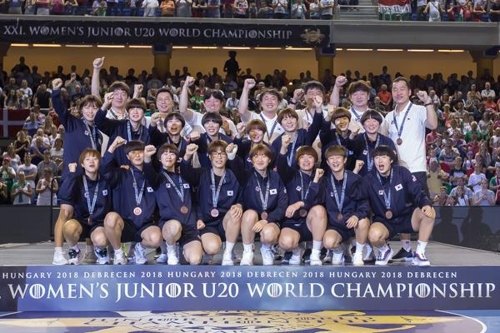 3위에 오른 한국 선수들. [국제핸드볼연맹 인터넷 홈페이지 사진]