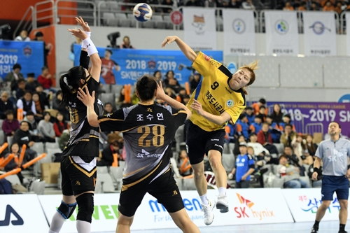 슛을 던지는 SK 조아람. [대한핸드볼협회 제공=연합뉴스]