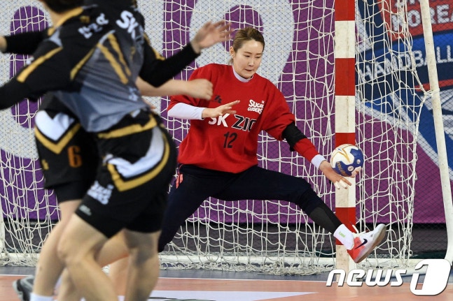 2일 서울SK핸드볼경기장에서 열린 2018-19 리그 개막전 여자부 경기에서 SK슈가글라이더즈 골키퍼 용세라가 슛을 막고있다(대한핸드볼협회 제공).© News1