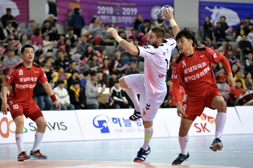 SK 부크 라조비치의 슈팅 모습. [대한핸드볼협회 제공=연합뉴스]