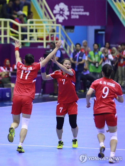 (서울=연합뉴스) 김동찬 기자 = 2019년 1월 독일에서 열리는 세계남자핸드볼 선수권대회에 단일팀을 구성하는 남북이 독일에서 곧바로 만나 훈련을 시작한다.11일 문화체육관광부 등에 따르면 임원 3명과 선수 4명 등 7명으로 구성된 북측 선수단이 이달 말 독일에 도착해 남측 선수단과 합류, 세계선수권을 대비한 훈련을 하기로 했다. 제26회 세계남자핸드볼 선수권대회는 2019년 1월 10일부터 27일까지 독일과 덴마크가 공동 개최한다. 남북은 지난달 체육분과회담을 통해 이 대회 단일팀 구성에 합의했다. 24개국이 출전하는 이 대회의 팀별 선수 수는 원래 16명이지만 국제핸드볼연맹(IHF)은 남북 단일팀만 20명으로 이를 늘려줬다.이에 따라 남측 선수 16명에 북측 선수 4명이 합류해 단일팀을 꾸리기로 했다. 남측 선수들은 16일까지 국내 리그 일정을 마치고 17일부터 충북 진천선수촌에 소집될 예정이다. 원래 2월 평창 동계올림픽이나 8월 자카르타·팔렘방 아시안게임 때의 단일팀 사례와 마찬가지로 북측 선수들이 방남해 손발을 맞춰본 뒤 현지로 출발할 계획이었으나 이번에는 곧바로 독일에서 처음 만나 훈련을 시작한다. 남측 선수들도 진천에 모인 지 나흘째인 20일에 곧바로 독일로 출국하는 항공편을 예약한 것으로 알려졌다. 남북 단일팀의 첫 경기는 대회 첫날인 1월 10일 개최국 독일과 공식 개막전이기 때문에 첫 경기보다 약 20일 먼저 대회 장소에 도착하는 셈이다. 기뻐하는 북한 여자 핸드볼(자카르타=연합뉴스) 홍해인 기자 = 14일 오후 인도네시아 자카르타 포키 찌부부르 스타디움에서 열린 2018 자카르타-팔렘방 아시안게임 여자 핸드볼 예선 한국과 북한의 경기에서 북한 김철순(왼쪽부터), 최춘일, 길미향이 득점에 성공한 뒤 기뻐하고 있다. 2018.8.14