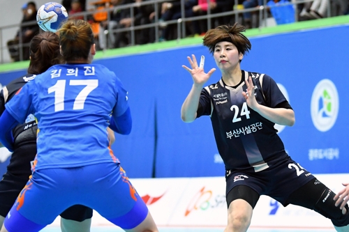 (서울=연합뉴스) 김동찬 기자 = 류은희와 권한나가 11골을 합작한 부산시설공단이 2018-2019 SK핸드볼 코리아리그에서 3연승을 거뒀다.
