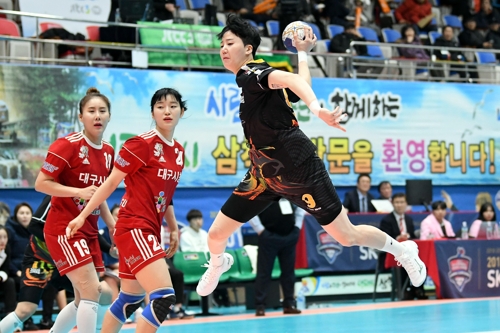 대구시청과 경기에서 슛을 던지는 SK 김온아. [대한핸드볼협회 제공]