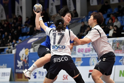 부산시설공단과 광주도시공사의 경기 모습.[대한핸드볼협회 제공]