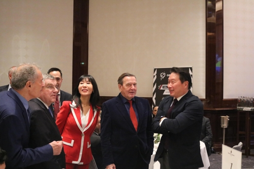 세계남자핸드볼선수권대회가 진행 중인 독일 베를린을 방문한 최태원 회장은 10일(현지시간) 남북단일팀과 개최국 독일의 개막전이 끝난 뒤 열린 주요 인사 만찬에 참석해 바흐 위원장, 하산 무스타파 국제핸드볼연맹(IHF) 회장, 게르하르트 슈뢰더 전 독일 총리 부부 등과 환담했다.