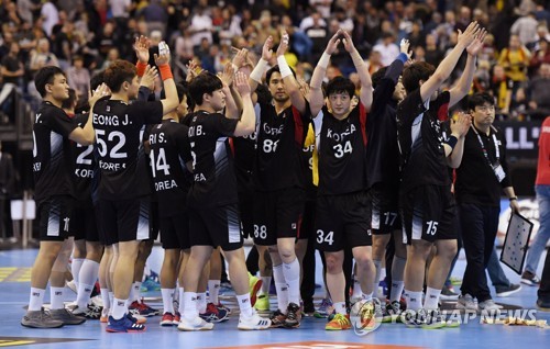 (영종도=연합뉴스) 김동찬 기자 = 남북 선수들이 힘을 합쳐 일본을 제압하고 세계선수권에서 승리를 수확한 남자 핸드볼 대표팀이 22일 귀국했다. 조영신(상무) 감독이 이끄는 단일팀은 10일부터 독일과 덴마크가 공동 개최하고 있는 제26회 세계남자핸드볼 선수권대회에서 24개 참가국 가운데 22위의 성적을 올렸다. 상위권 성적은 아니지만 남자 핸드볼이 워낙 유럽 국가들이 강세를 보이는 데다 단일팀이 이번 대회에서 ''죽음의 조''에 편성됐다는 점에서 20위권 순위는 어느 정도 예상된 결과이기도 했다. 대회 개막을 불과 20일 정도 앞두고부터 남북 선수들이 합동 훈련을 시작해 조직력을 다질 시간이 부족했던 점도 아쉬웠다. 세계 랭킹 19위인 우리 측 선수 16명에 세계 랭킹 자체가 없는 북측 선수 4명이 합류한 단일팀은 대회가 시작하기 전부터 개최국 독일(1위)을 비롯해 러시아(4위), 프랑스(5위), 세르비아(6위) 등과 같은 A조에 묶이는 ''대진 추첨 참사''를 겪었다. 4개 조에 6개국씩 편성된 이번 대회 조별리그에서 B조는 스페인(7위)의 세계 랭킹이 가장 높았고, C조는 덴마크(3위)가 유일한 10위 이내 국가일 정도로 A조에만 강팀들이 집중됐다. D조 역시 스웨덴(2위), 헝가리(8위) 외에는 모두 10위권 밖의 나라들로 채워졌다. 그러나 단일팀은 독일과 공식 개막전에서 전반 중반까지 접전을 벌이며 1만여 관중 앞에서 좋은 경기력을 발휘했고, 특히 프랑스, 세르비아를 상대로는 경기 막판까지 접전을 펼쳤다.