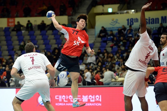 작년 수원에서 열린 제18회 아시아남자핸드볼선수권대회에서 박광순이 카타르와의 경기에서 슛을 시도하고 있다.