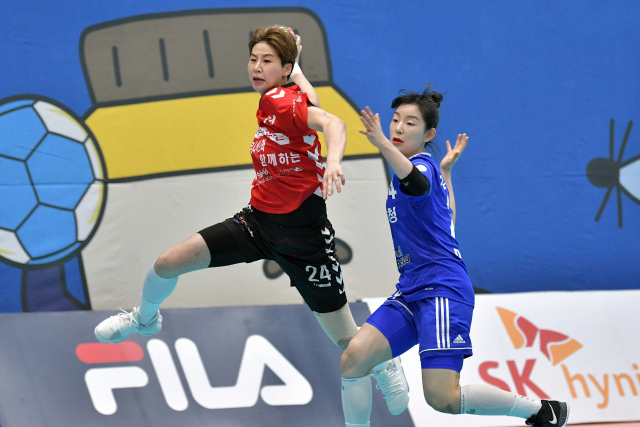 지난해 12월 지난 시즌 최하위 팀 광주도시공사와 여자부 개막전에서 29-34로 패해 ''디펜딩 챔피언''의 자존심을 구긴 이래 설욕전을 펼친 것이다.