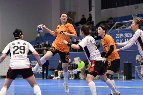 (서울=연합뉴스) 김동찬 기자 = SK와 삼척시청이 2019-2020 SK핸드볼 코리아리그 여자부 공동 선두에 나섰다.