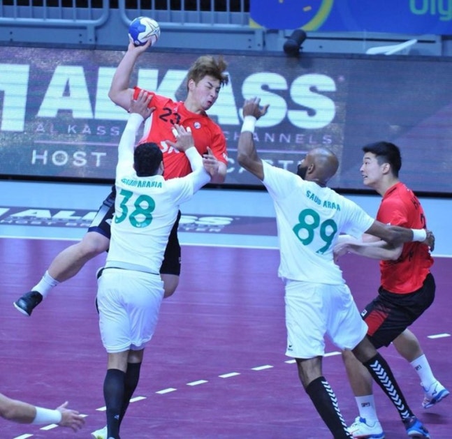 2019년 카타르에서 열린 도쿄올림픽 아시아지역 예선 한국-사우디아라비아 경기 모습.[아시아핸드볼연맹 소셜 미디어 사진 캡처.재판매 및 DB 금지] photo@yna.co.kr