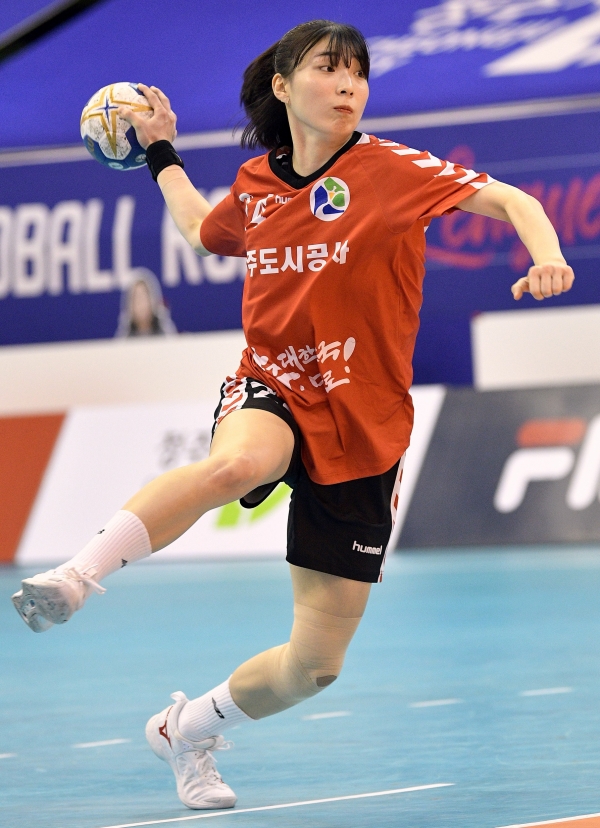 광주도시공사 강경민이 슛을 시도하고 있다. (C)대한핸드볼협회[스포츠타임스=이진원 기자] 광주도시공사가 디펜딩챔피언 SK슈가글라이더즈와 무승부를 기록했다.