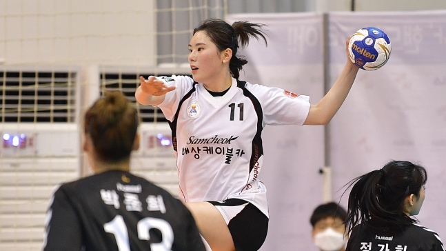 삼척시청은 오늘(19일) 청주에서 열린 SK핸드볼 코리아리그 여자부 1라운드 부산시설공단과 경기에서 30대24로 승리했습니다.