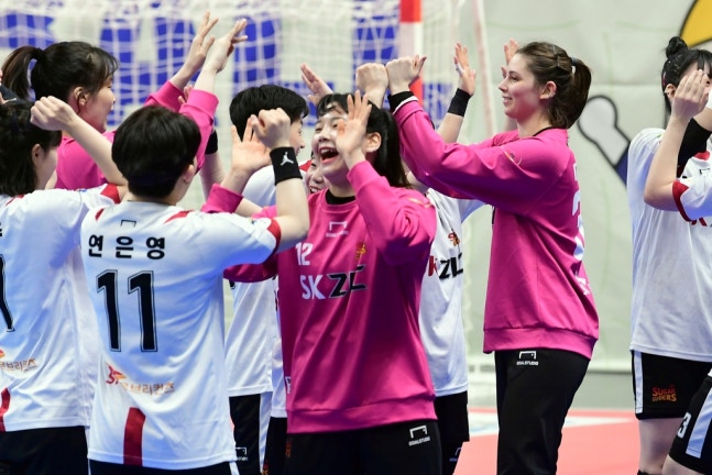 오성옥 감독이 이끄는 SK는 12일 강원도 삼척 시민체육관에서 열린 2021-2022 SK핸드볼 코리아리그 여자부 2라운드에서 서울시청을 35-27로 물리쳤다.