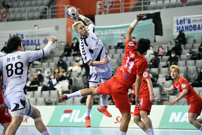 (서울=연합뉴스) 김동찬 기자 = 남자 실업 핸드볼 충남도청이 3년 2개월 만에 2연승 기쁨을 누렸다.