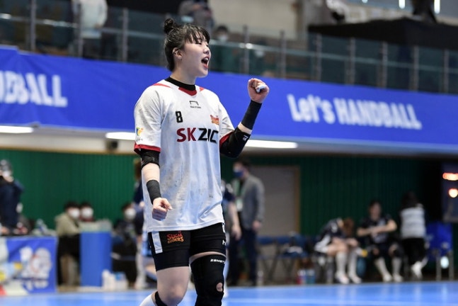 여자핸드볼 SK슈가글라이더즈가 신승을 거뒀다.SK슈가글라이더즈는 11일 삼척시민체육관에서 열린 2021~2022 SK핸드볼코리아리그 서울시청과의 경기서 30-29(17-17 13-12)로 짜릿한 한 점 차 승리를 올렸다. 승점 25점(12승1무6패)을 만들며 8개팀 중 2위를 지켰다.이한솔이 6골을 넣으며 경기 MVP로 선정됐다. 유소정이 7골, 이민지가 방어율 41% 등으로 힘을 합쳤다.전반 2분 SK는 유소정과 이한솔의 득점으로 리드를 잡았다. 상대가 우빛나를 앞세워 추격하자 이민지의 선방과 김하경의 속공으로 우위를 점했다. 전반 23분 서울시청은 최한솔과 김리안의 득점으로 12-12 균형을 맞췄다. 결국 17-17 동점으로 전반을 마쳤다.후반에도 힘겨루기가 팽팽했다. 후반 13분 SK 박하얀의 패스 실수가 나오자 틈을 타 서울시청 윤예진이 득점에 성공했다. 점수를 뒤집었다. SK는 후반 15분 최수지와 최수민의 연속 득점으로 26-25 역전했다. 엎치락뒤치락한 끝에 SK 최수지가 스틸하며 마지막 점수를 올렸다. 30-29로 마침표를 찍었다.서울시청은 7위(승점11점 5승1무13패)에 머물렀다. 우빛나가 11골, 박지호가 6골을 기록했다.이날 광주도시공사와 경남개발공사의 경기에서는 광주도시공사가 27-23으로 승리했다. 컬러풀대구(vs인천광역시청), 삼척시청(vs부산시설공단)의 경기는 구단 내 신종 코로나바이러스 감염증(코로나19) 관련 사정으로 인한 불참으로 몰수패 처리될 예정이다.사진=대한핸드볼협회 제공 / SK슈가글라이더즈 이한솔기사제공 스포츠월드