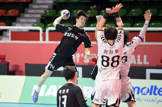 충남도청은 17일 충북 청주 SK호크스 아레나에서 열린 2021-2022 SK핸드볼 코리아리그 남자부 3라운드 인천도시공사와 경기에서 29-28로 승리했다.
