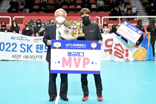 2021-2022시즌 정규리그 여자부 최우수선수(MVP)에는 경남개발공사 골키퍼 오사라가 선정됐다.