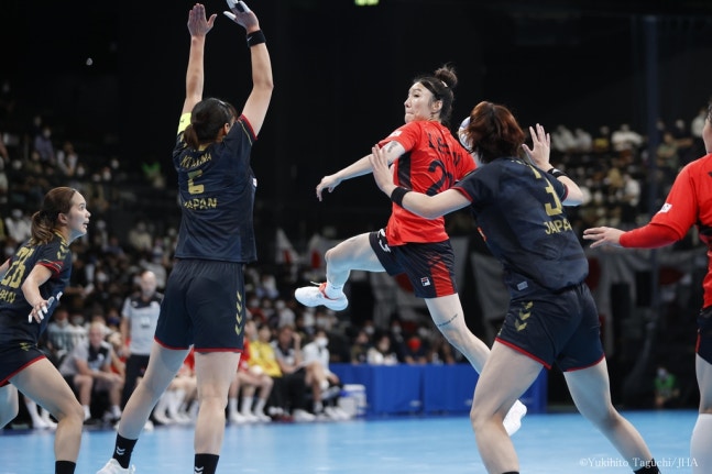 [대한핸드볼협회 제공. 재판매 및 DB 금지]앞서 열린 남자부 경기에서는 일본이 한국을 25-19로 물리쳤다.남자부 경기에서도 한국이 전반까지 12-11로 한 골 앞섰지만 후반에 역전을 허용했다.남자부 역시 5월 홀란도 프레이타스(포르투갈) 감독 선임 이후 첫 공식 경기에 나섰으나 일본에 덜미를 잡혔다. 박세웅이 5골, 이현식(이상 SK)이 4골을 넣었다.남자부 통산 전적은 9승 1무 2패로 여전히 한국이 앞서 있다.남자부 경기에서는 우리나라가 2008년부터 2016년까지 8연승을 달렸으나 이후 네 차례 맞대결에서는 1승 1무 2패로 한국이 열세다.2019년과 이번 대회에서 2연패를 당했다. 2020년과 2021년에는 신종 코로나바이러스 감염증(코로나19) 등의 이유로 경기가 열리지 못했다.