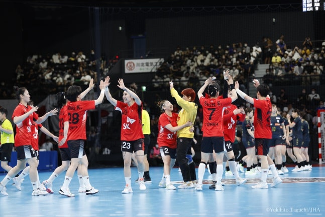 [대한핸드볼협회 제공. 재판매 및 DB 금지](서울=연합뉴스) 김동찬 기자 = 한국 여자 핸드볼 대표팀이 일본과 정기전을 승리로 장식했다.한국은 4일 일본 나고야에서 열린 핸드볼 국가대표 한일정기전 여자부 일본과 1차전에서 25-19로 이겼다.올해 5월 킴 라스무센(덴마크) 감독에게 지휘봉을 맡긴 여자 국가대표 선수단은 외국인 감독을 선임한 뒤 첫 공식 경기에서 기분 좋은 승리를 거뒀다.지난해 도쿄올림픽 조별리그 경기에서 27-24로 이긴 이후 일본과 첫 맞대결에서 승리했고, 한일 정기전 통산 전적에서도 9승 2패 우위를 유지했다.2008년 창설된 핸드볼 한일 정기전 여자부에서 우리나라는 2013년부터 7연승을 기록 중이다.전반을 13-12로 근소하게 앞선 한국은 후반 들어 이미경(12골·부산시설공단)과 강경민(6골·광주도시공사) 등의 득점포로 점수 차를 벌려 홈팀 일본을 6골 차로 제압했다.