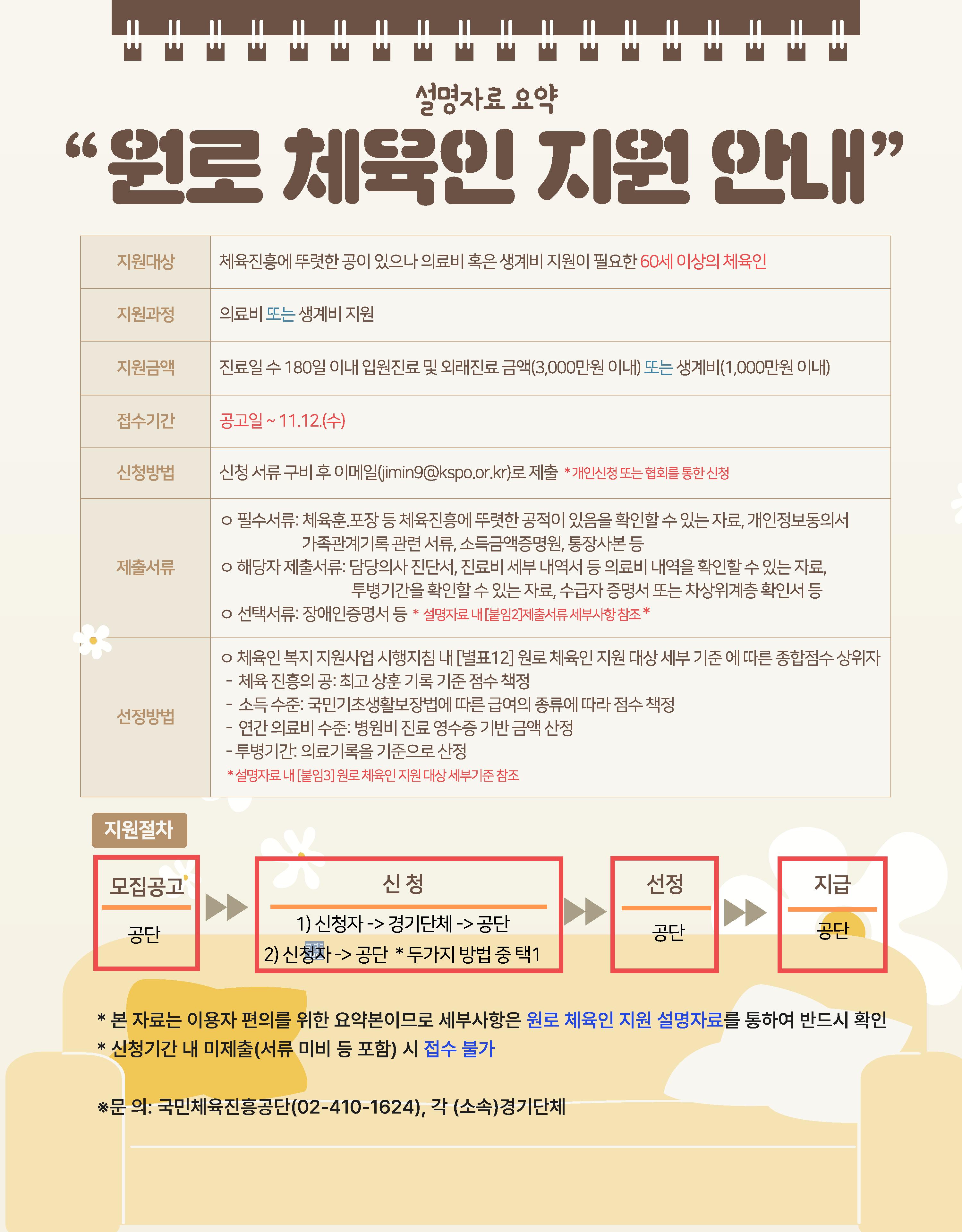체육진흥에 공이 있는 60세 이상 체육인 대상 의료비 및 생계비 지원 신청을 안내드립니다.